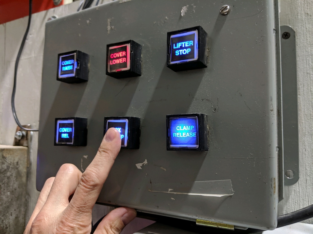 Control panel box used for managing laboratory equipment operations. Features labeled buttons for specific commands. Ideal for laboratory se...