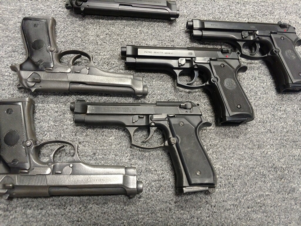 Realistic-looking prop guns. Ideal for film, theater, or cosplay. Made from durable materials to mimic authentic firearm appearance.